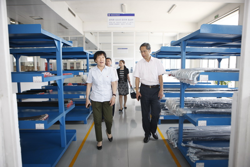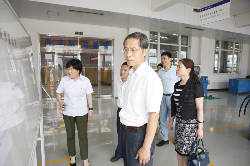 第九次全省厂务公开民主管理工作检查组来MK体育视察,MK体育集团工会主席高俊荣陪同参观。