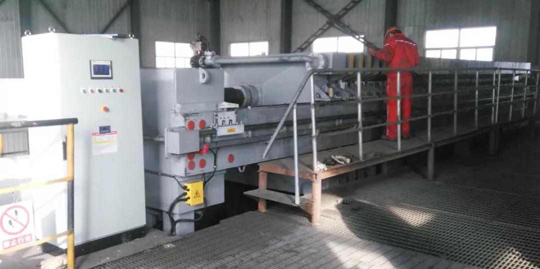 采用MK体育2000型700平方单室进料压滤机 3台,每个循环50分钟,滤饼水份15-16%。